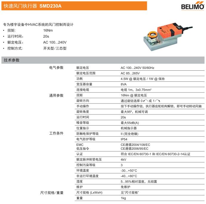 • SMD230A快速風(fēng)門執(zhí)行器